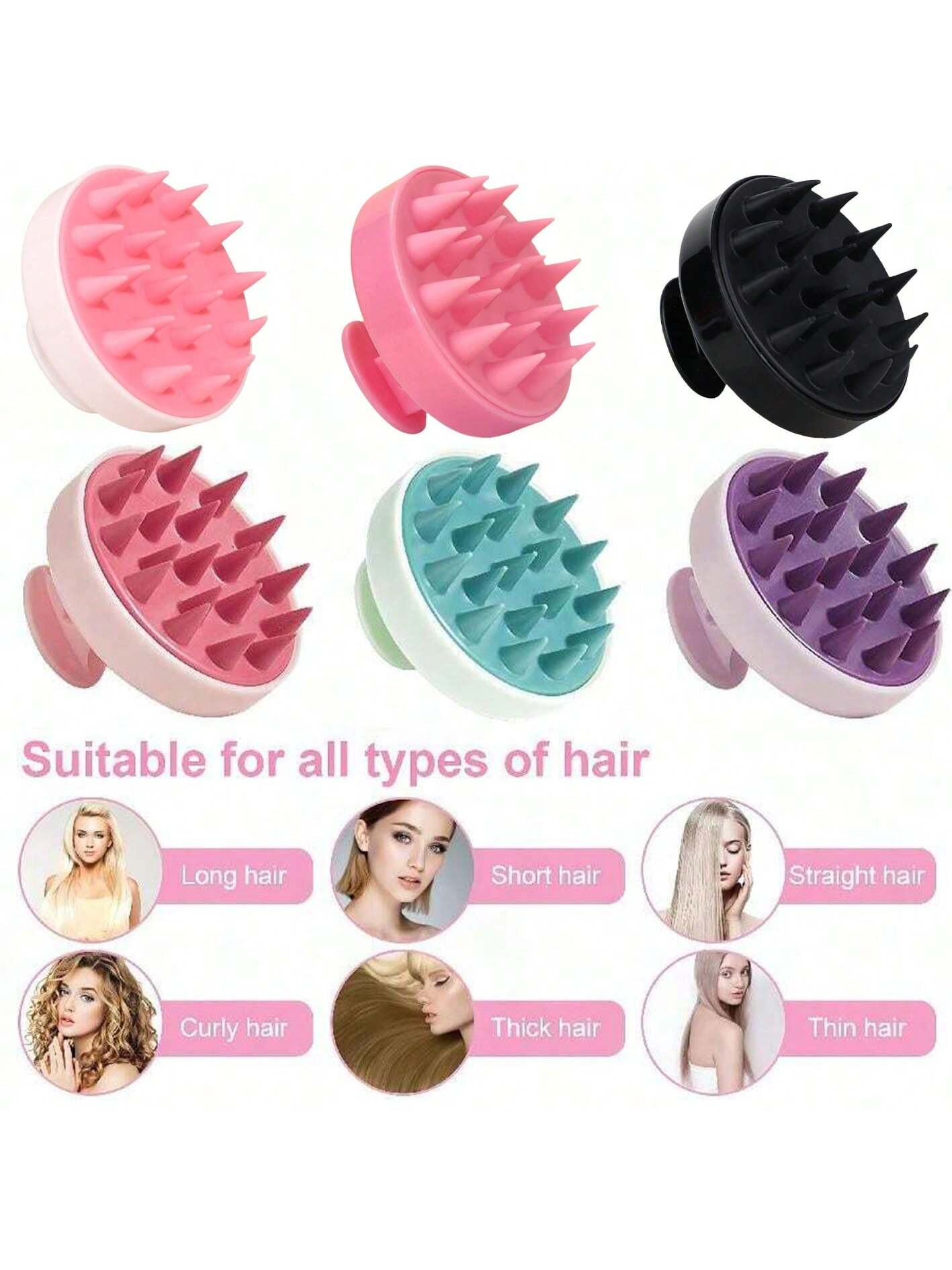 Brosse de massage en silicone hypoallergénique, douce pour le cuir chevelu. Nettoie en profondeur, stimule la circulation sanguine et favorise la pousse des cheveux. Utilisable à sec ou sous la douche. Convient aux hommes, femmes, enfants et animaux de compagnie. Coloris au choix : rose pastel, vert menthe, violet lavande.